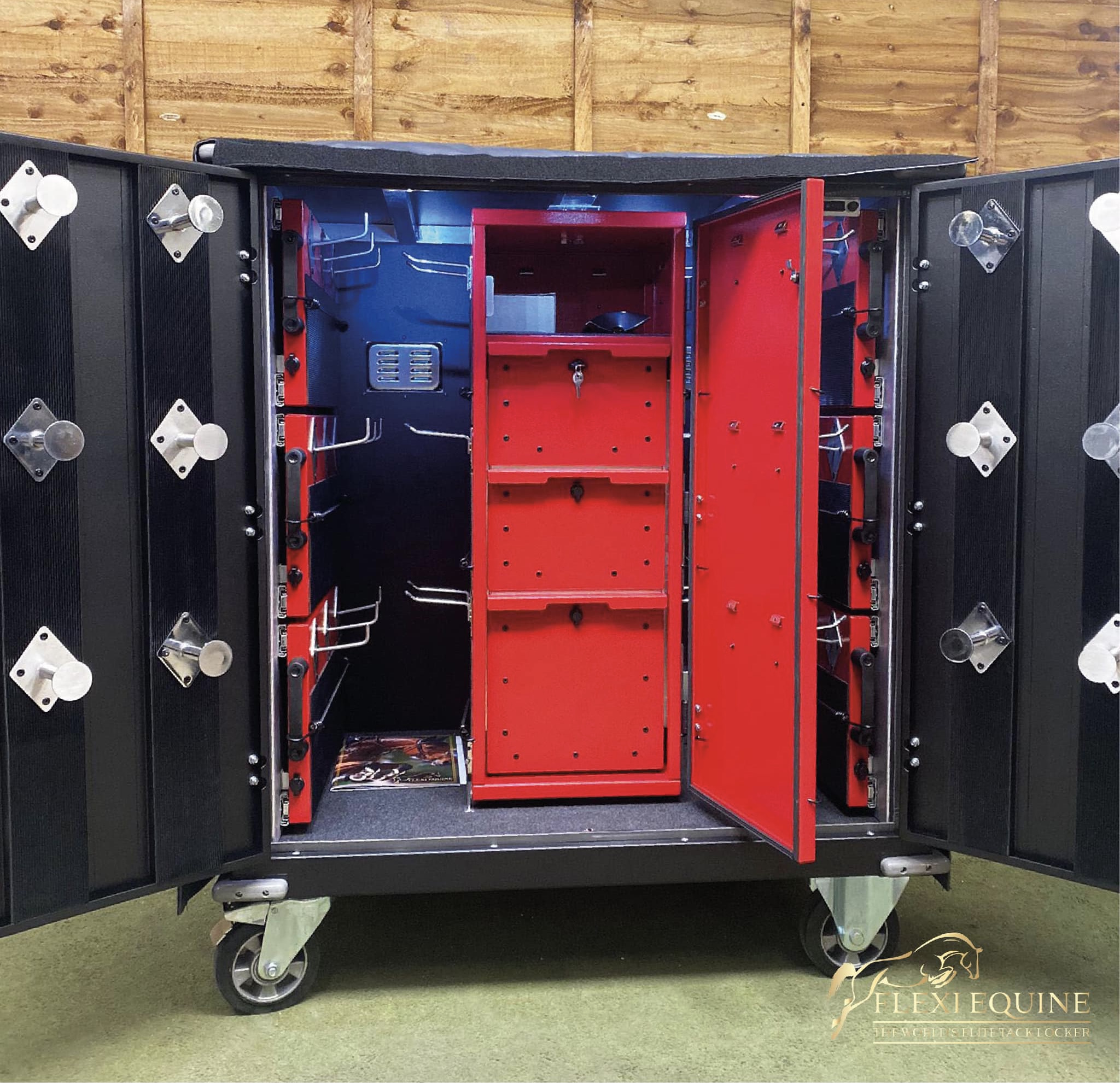 Täydellinen lisävaruste Vertical XL ja Traditional Trunk kanssa sekä koko muun kisakaappivalikoiman kanssa. Stable & Grooming Box voidaan räätälöidä vastaamaan kaappiasi tai tallin värejä ja logoa.